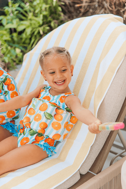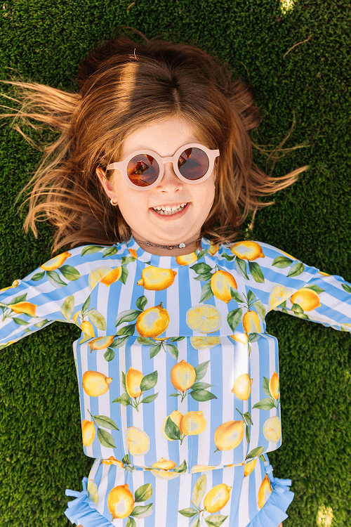 Absolutely. Our swimsuits are made with UPF 30+ fabric, blocking up to 97% of harmful UV rays to help protect your child’s skin.